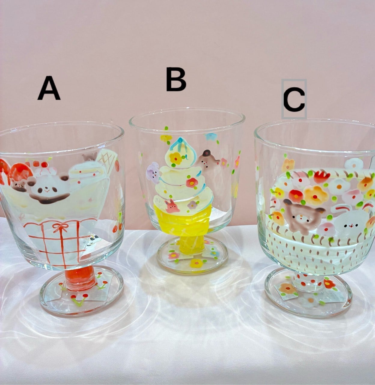 足付きのグラスに可愛いhey*flowerさんの絵付けが入ってます⭐︎